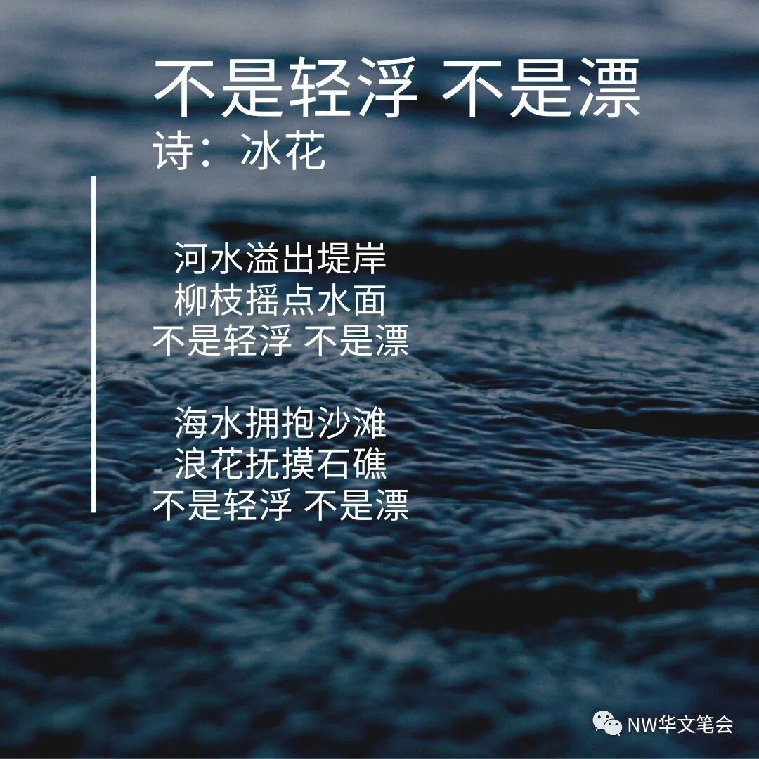 很多读者发现,冰花的诗歌以短小精悍而闻名,殊不知,她在无数次锻字凝句的过程中,提取了精髓,从而使她的诗歌极其富有个人风格和辨识度。这是她的《不是轻浮 不是漂》初稿和定稿的对比。由金女性北美语言艺术团团长Julie Liu朗诵。不是轻浮不是漂音频:00:0001:52