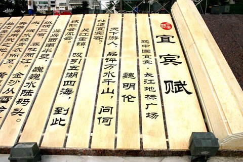 《宜宾赋》石刻长碑2006年七月在宜宾合江门长江地标广场落成,该碑长33.3米,堪称中国最长的辞赋碑刻。