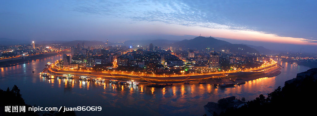 鼎鼎西南半壁,巍巍水陆码头。纵横三省,吞吐两江。金沙从雪岭而来,岷水经青衣而至。黄浪翻腾,如英雄奔用武之地;碧波荡漾,似佳人赴比美之场。宝地为媒,双水融融合抱;巨龙出世,长江滚滚诞生。早离故土,远方沧海召唤;初上征途,身后翠屏送行。难在起步,贵在开头。万里长江从此伊始,千年古邑因此扬名。