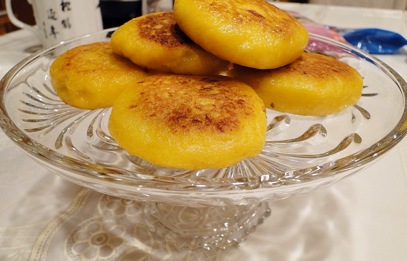 回来洗了洗,拿出水果刀,两三下,就成了。挖出来的南瓜,就做了几个南瓜饼。