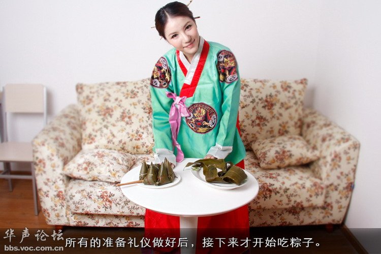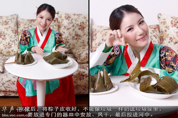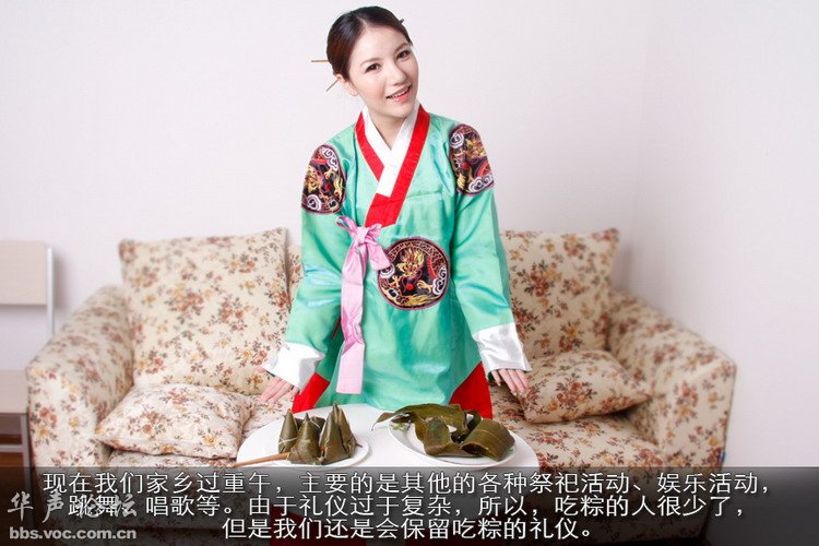 在这篇名为“韩国美女留学生教你吃粽子思密达”帖子中,一位自称北京某大学韩国留学生先是摆出各种不雅造型举例说明北京人不懂如何吃粽子,然后又穿上韩服教中国人吃粽子时候要先注意礼仪,讲究卫生等等。 a&^HvXO(>(