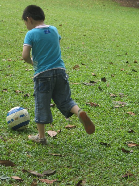 我们今天只踢球了,没顾上逛,园子可大了,植物种类比较多。