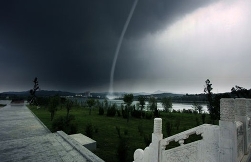 h>L6{d1 .2(@jx,[ 2009年8月3日16時許,位於山東棲霞市境內的長春湖面上,突然騰起一條參天水柱,頃刻間大雨傾盆。