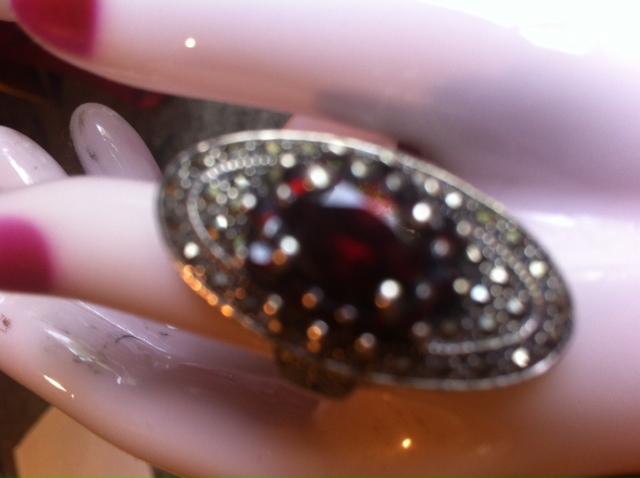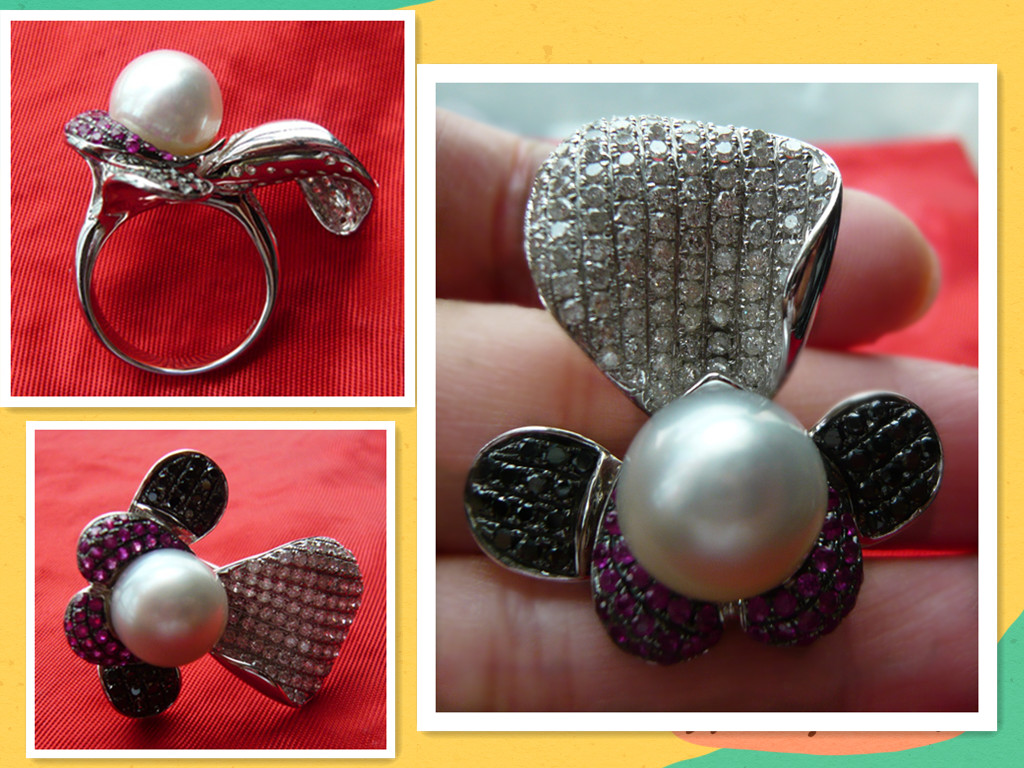 我也秀一个戒子,胡姬花款式,有点夸张。18k铂金红宝石和黑白钻石。