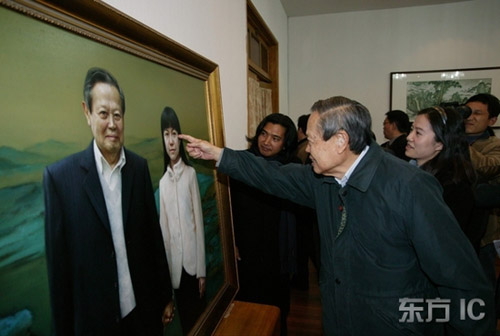ou)0tX3j 2GigeN|1N 座谈会后,杨振宁来到一楼的接待室稍作休息。谈到这幅油画肖像,杨振宁的评价说:”把我画得不错,神态和样子都很像。”杨老接下来的话有些出人意料:“不过,还是有个小小的缺点,把翁帆画得不好,眼睛和嘴巴挺像,但是鼻子有点问题,画得有点大了。”杨振宁笑着说,他已经把这些“意见”跟庄天明提了,“所以之后还要再修改一下。”