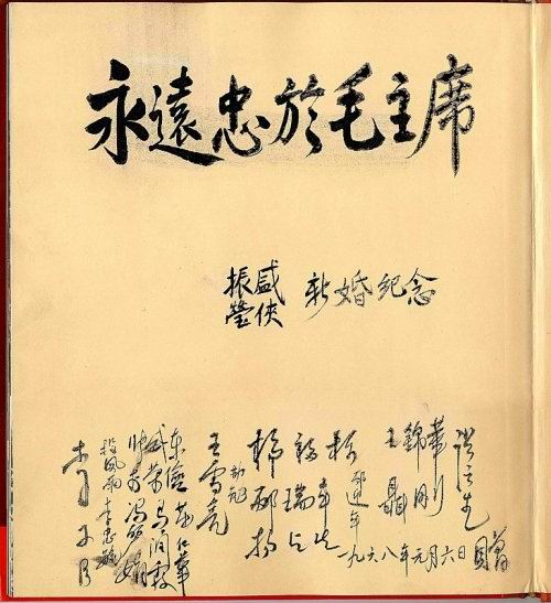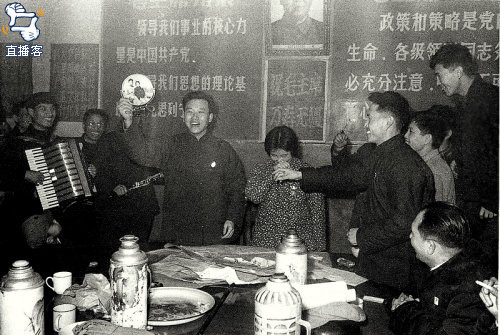 描述:参加婚礼的宾客一起高唱歌《东方红》和《大海航行靠舵手》。