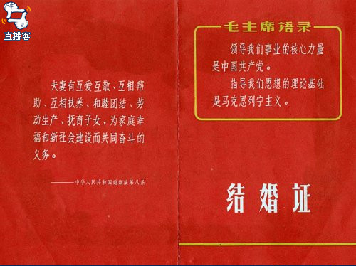 描述:印着“语录”的结婚证,只有一份,注明“此证由男女双方共同保存”。
