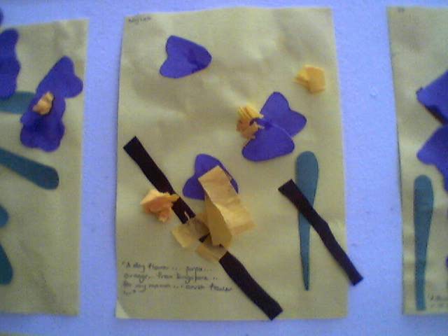 我们这周的课题是WALK IN THE FOREST,在教室的ARTS墙上,我们用碎布,报纸,泡沫塑料,和装鸡蛋的盒子做了一幅美丽的森林图画。