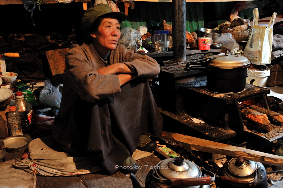 在山上,拉姆的家里很杂乱,房子只有二尺见方的一个小窗子,屋里光线极差,白天也点着一盏白炽灯。她们在山下还有房子,我估计应该不会象山上这样临时住所一样吧。当地政府要拉姆及周围住户统统搬走,可是他们不愿搬。在山下即使生活条件好些,可是失去了游客,他们就少了经济来源。