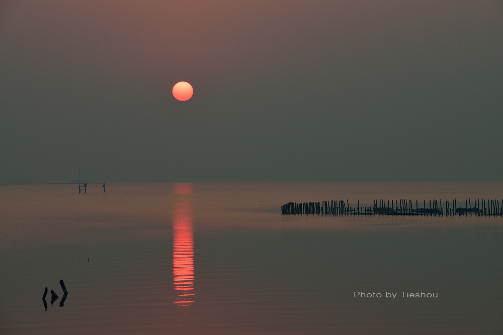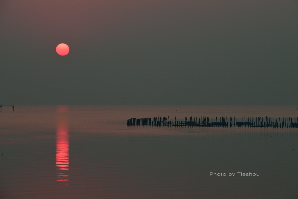清晨的日出可供拍摄的时间极短,一旦太阳跳出水面,很快就炙热的耀眼,懒得上渐变镜了,试拍两张黑白的。