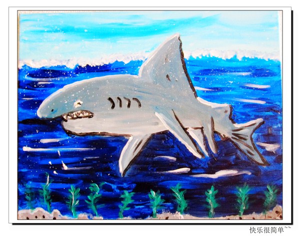 上周的画,马麻觉得鲨鱼画得没灵气,可是天空和海水深深浅浅的蓝色处理得不错。