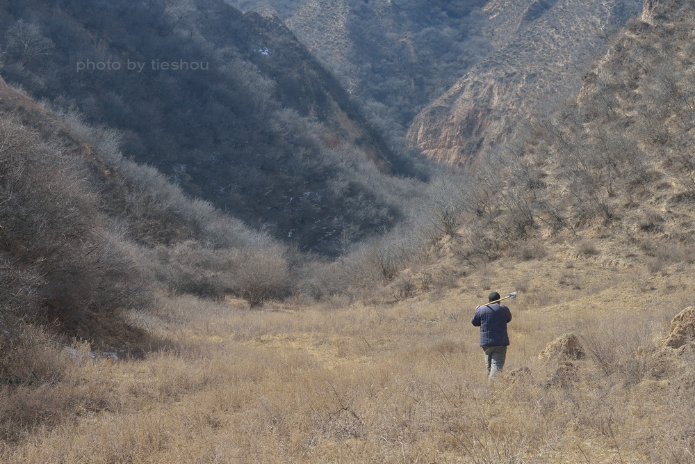 聊着聊着,可能是羊倌想到没几天就又要赶着羊群去临县山林里放牧,一年回不了家,脸色不由得慢慢凝重起来……。看着羊倌走在山坡坡里孤独的背景,我更理解了羊倌生活中的不易。