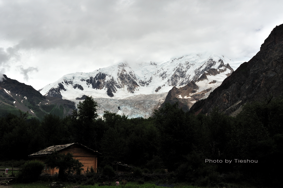 米堆冰川,我是平生第一次这么近距离地观看一座冰的山峰,还想不通为什么尘埃覆盖下面的冰层颜色会发蓝?