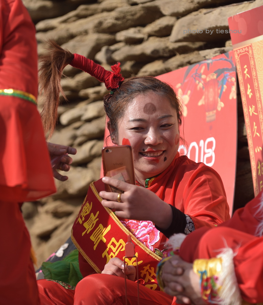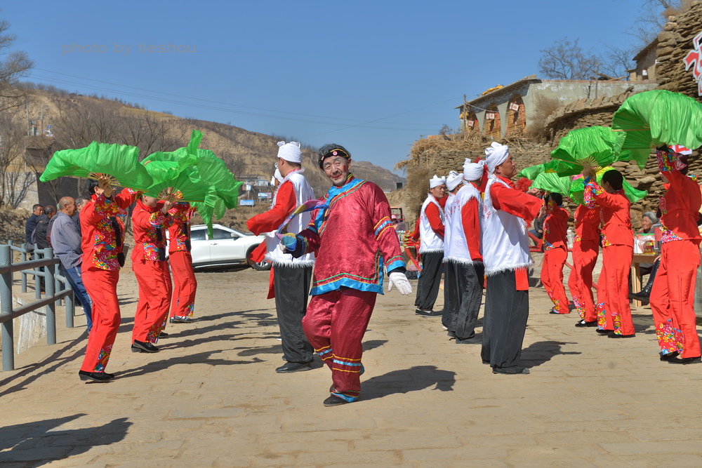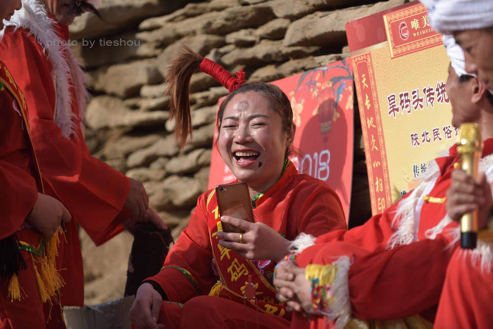 绥德县政府为了促进春节期间乡村的文化娱乐活动,在郭家沟安排了陕北说书和花轿旱船表演给当地百姓和游客助兴,这为我提供了接触陕北文化娱乐活动的机会,下面这些照片就是取自于郭家沟的文化娱乐活动。