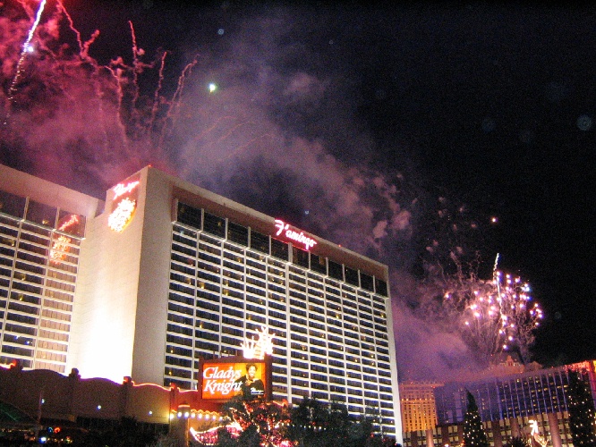 晚上决定去拉斯维加斯大道,在那迎接新年。我的朋友对此可是一点不感兴趣,他告诉我晚10点要封路。所以我在9点动身。不过此时已晚,I-15州际公路所有通往拉斯维加斯大道的出口全部封住,车下不去。我只有往前开,在前面一个能下的出口下去,再往回开。好不容易开到家大赌场的停车场,排了很久的队后,却被告之非住店不可停车。平时你可在任何一家赌场的停车场免费停车,因为赌场希望客人因此在它的赌场赌钱。