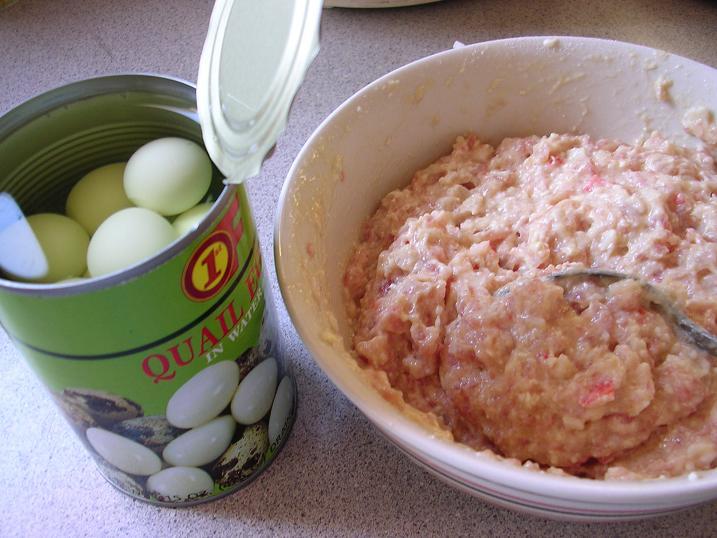 昨天做的狮子头, 包了小鸟蛋, 还剩了十多颗呐, 做了这个.