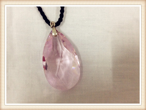 粉色水晶挂坠,夏天一件黑色低胸T雪,挂在白白的脖子前,呀,很显~~~