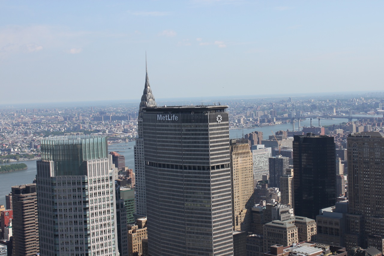 接着去了洛克菲勒顶楼。当然进门要安检,然后排队买票,再然后排队登顶。一切倒是井然有序,很成熟的生意经了。三个人一共57欧,我觉得风景也就那么回事,既不值得这价钱,也不值得那功夫。早知道这样,还不如重返“大都会”呢。从洛克菲勒下来,妞爹提议去中国城看看,顺便把晚饭解决掉。