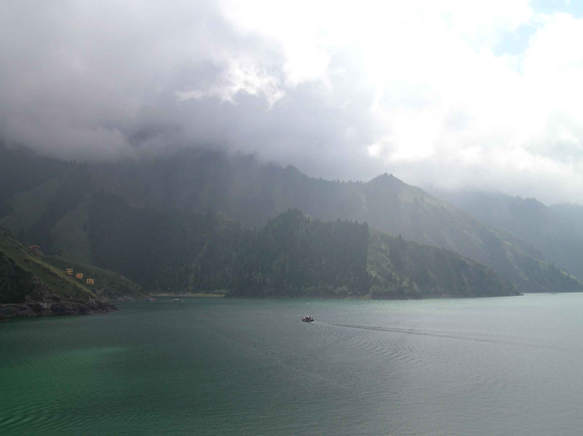 那是个雨后的雾天,导游说天气不好让天池逊色些,看不到远处的雪山。