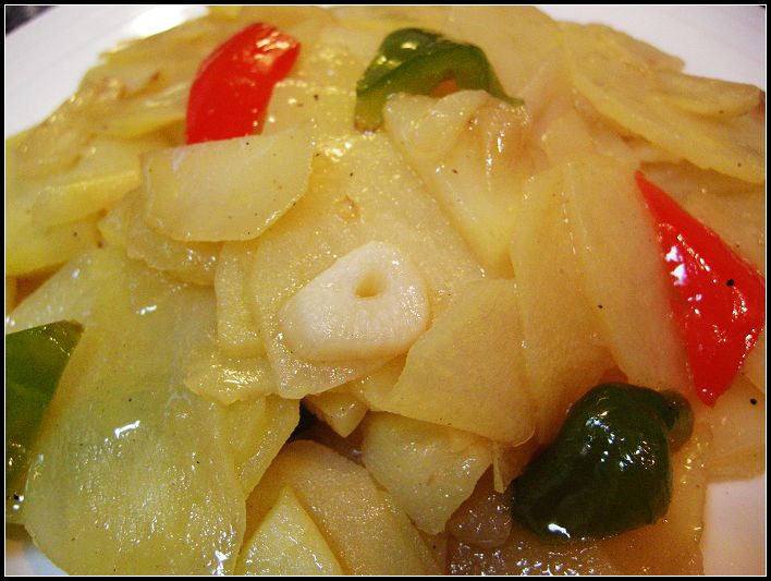 2,起油锅炒洋葱,炒熟了加鸡肉继续炒片刻,加胡椒粉,添600ml水。