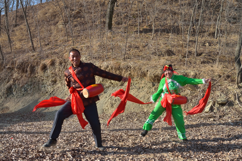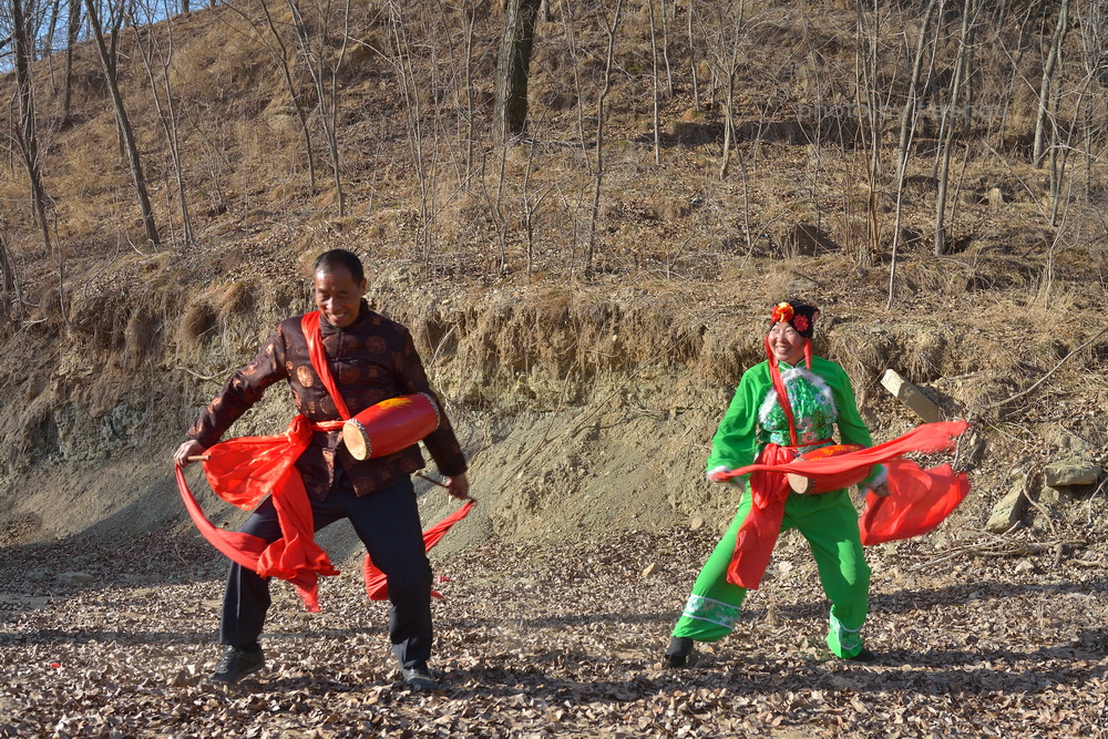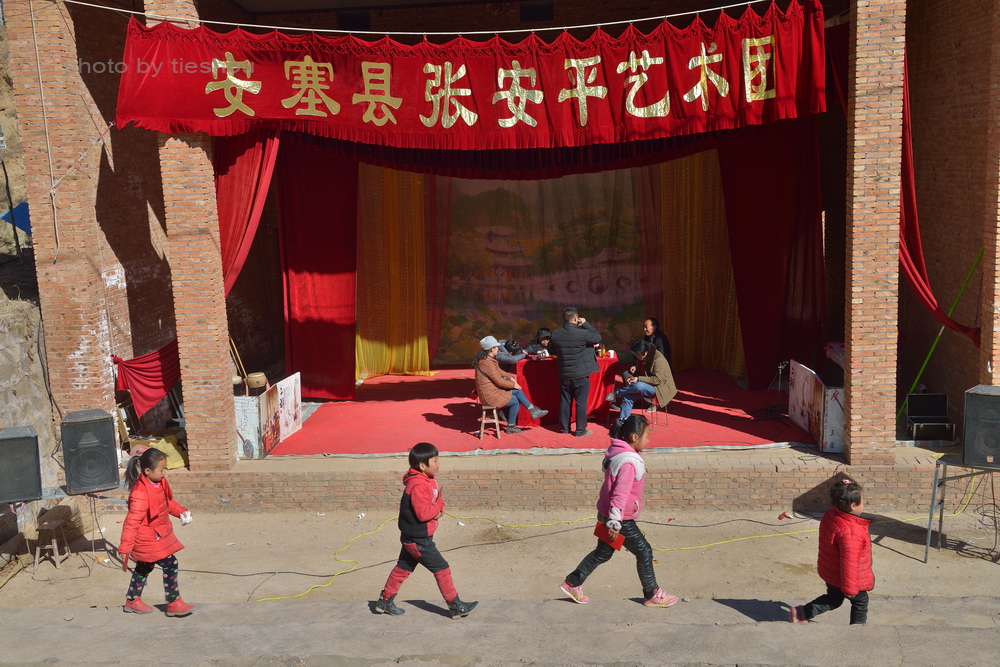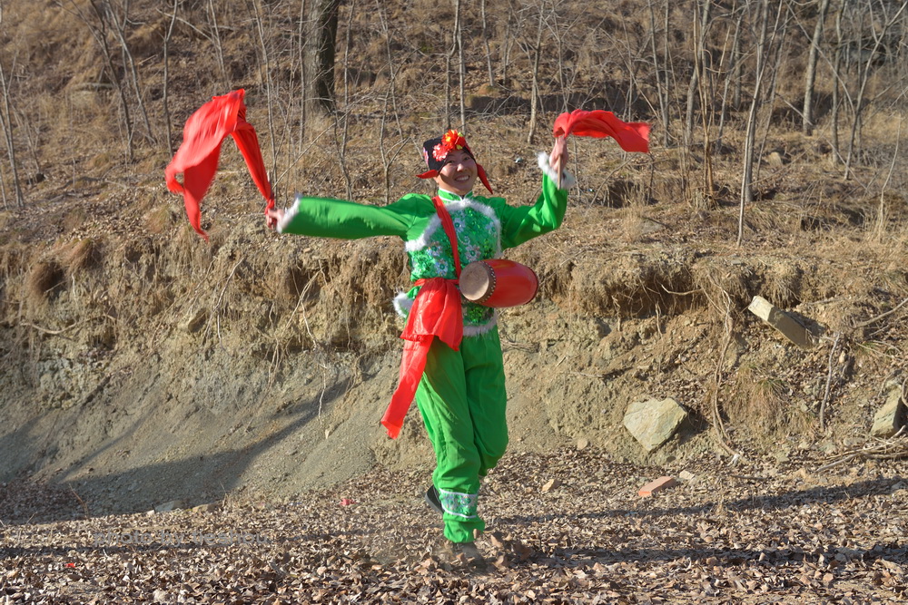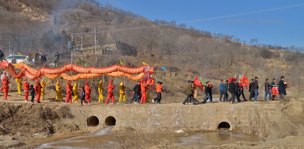 初八这一天是安塞县龚家沟正式的祭祀日子,后来我到延安、榆林的其它地方也看到、听到初八有祭祀活动的消息,看来在陕北,初八祭祀应该是共同的传统习俗。 这天周边老乡来了很多,祭祀活动内容也相当丰富。有打腰鼓、舞龙、转九曲的民俗活动,另外,请了地区的艺术团来做表演,还近距离观赏了一次川剧中的变脸。 在长串的鞭炮和喧天的锣鼓声中,恭请神灵的队伍抬着神灵的牌位,举着龙,吹着锁呐出发了……