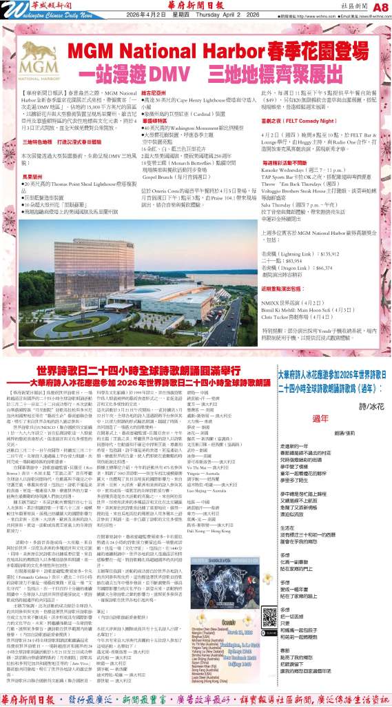 【華盛頓新聞】大華府詩人冰花應邀參加2026年世界詩歌日全球詩歌朗誦