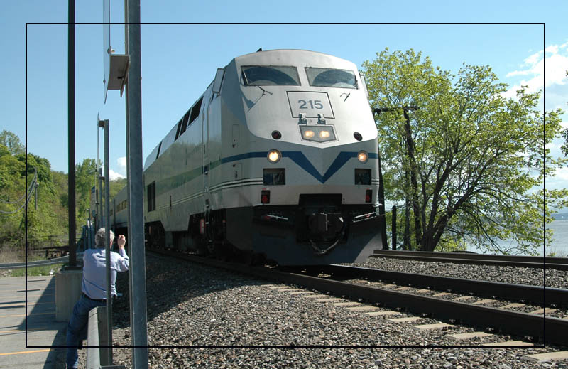 火车从我们身边呼啸而过,他拍了几张照片后又赶快回身上车。